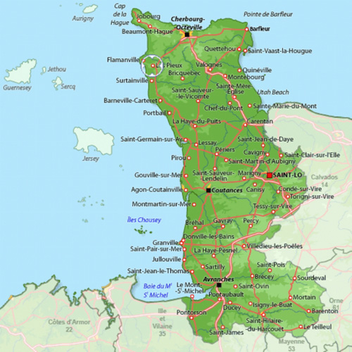 Buiten de grote steden Cherbourg-Octeville en Saint-Lô bestaat La Manche goeddeels uit een netwerk van smalle weggetjes die kleine dorpjes met elkaar verbinden, waar hier en daar een iets grotere stad opduikt die dienst doet als regionaal winkelcentrum en de omgeving medisch en maatschappelijk ondersteunt.