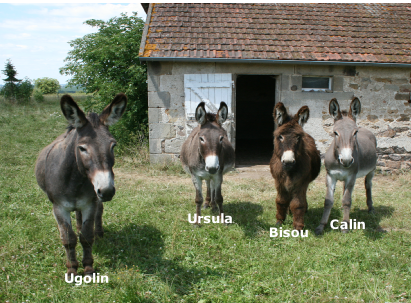 Eind 2013 werden de ezeltjes Simson, Zaza en hun zoon Mephisto vanuit de Dordogne naar Aide Aux Anes vervoerd.