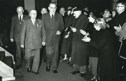 Vadertje Drees wordt onthaald op applaus door ouderen