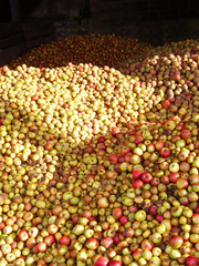 Na het rapen worden de appels naar de boerderij getransporteerd en vervolgens tot “pommage” gemalen.