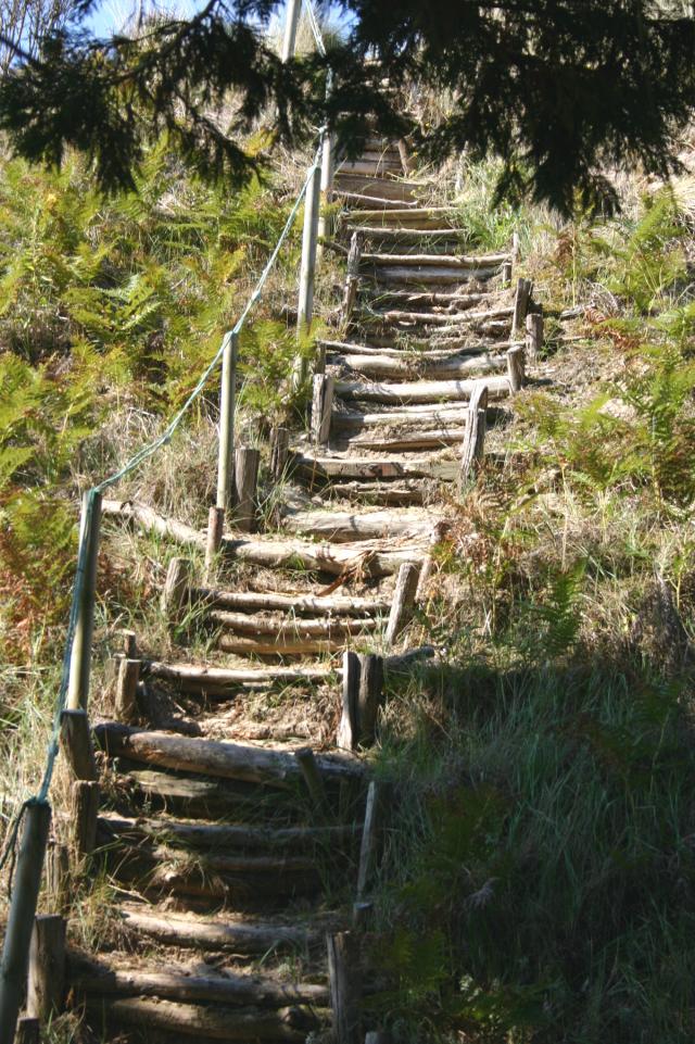 Via een trap kunt u rechtstreeks naar het strand. Overigens wel een aardige klauterpartij.